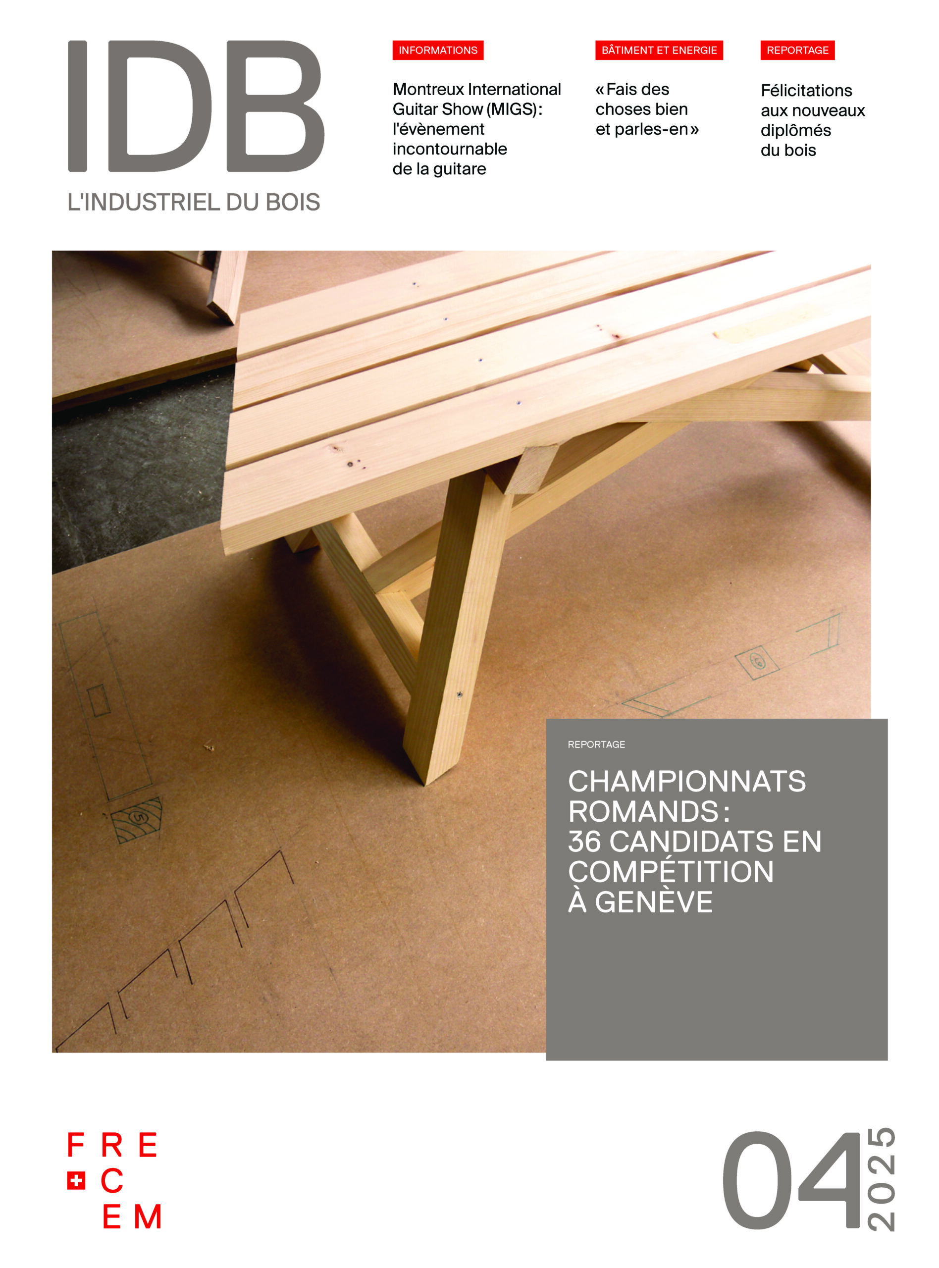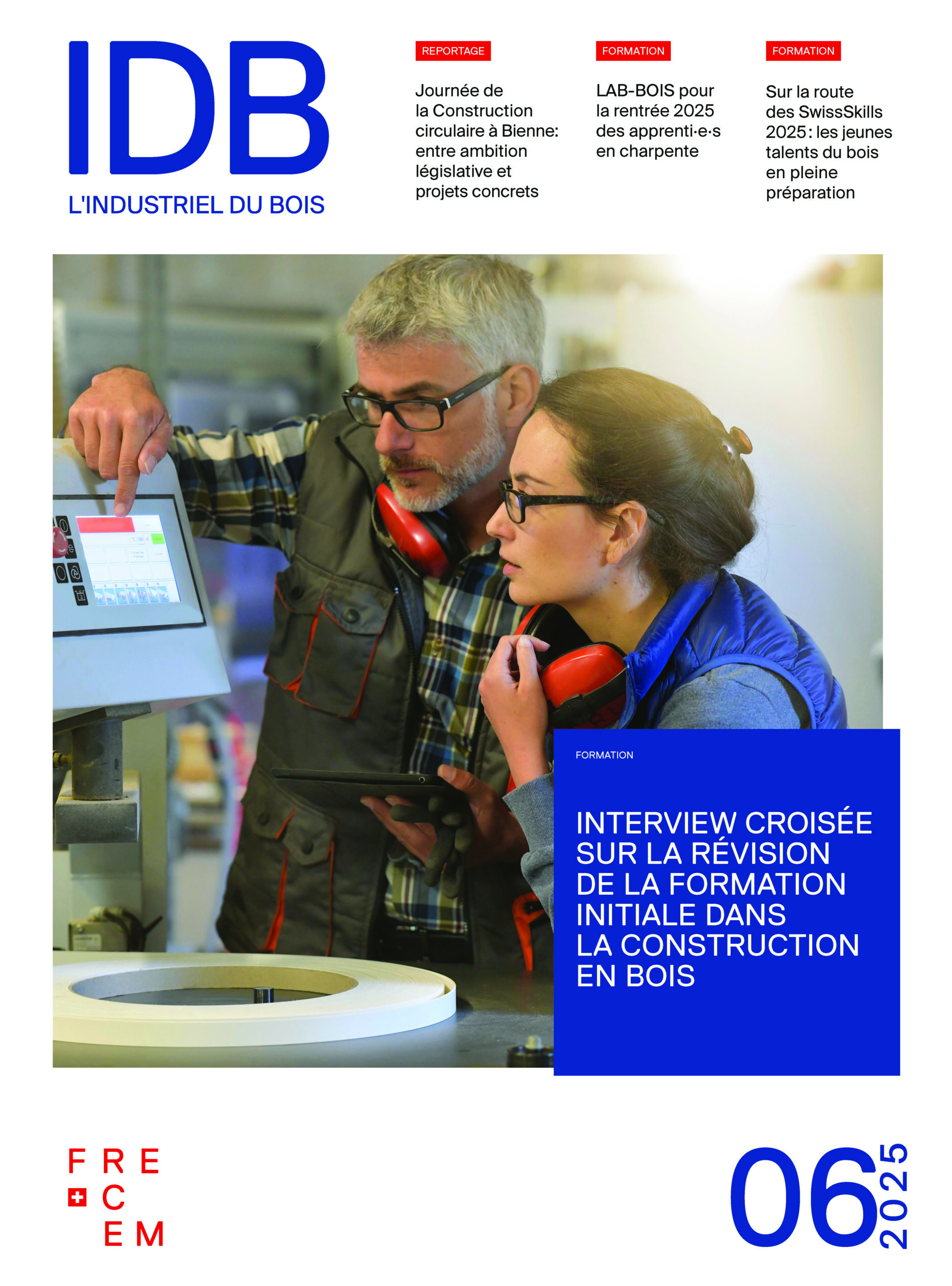 En 2025, l’IDB a diffusé de nombreux articles concernant les jeunes en formation et les concours professionnels. L’examen quinquennal des formations de charpentier CFC et praticien sur bois AFP a été un sujet central, avec une interview croisée entre la FRECEM et Holzbau Schweiz. La réforme de la formation professionnelle supérieure de menuiserie-ébénisterie, lancée en 2021 et qui s’est achevée en 2025, a aussi été traité, tout comme l’introduction du programme LAB-BOIS.