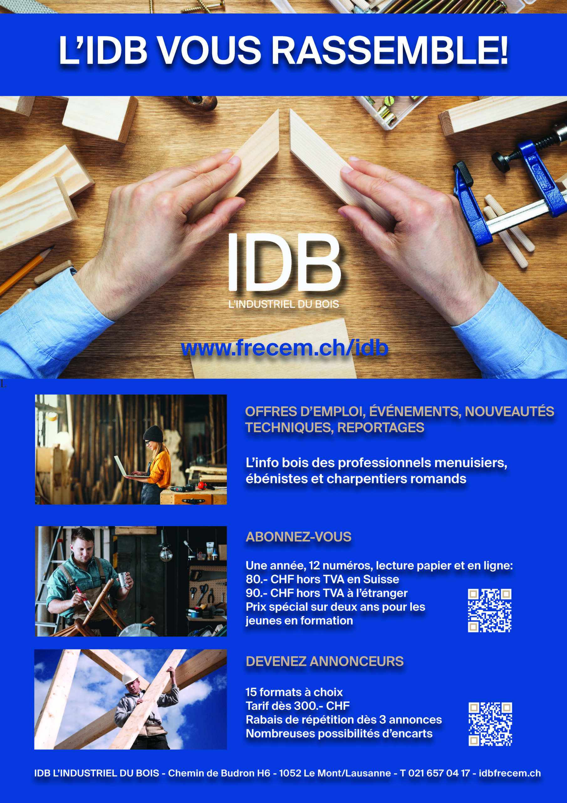 L’année 2025 était riche en salons et événements, que l’IDB a couvert par ses articles ou en était présent sur les lieux. Entre janvier et février, Salon Bois à Bulle a fait l’objet de nombreuses pages et le tirage a été augmenté pour être distribué sur place.